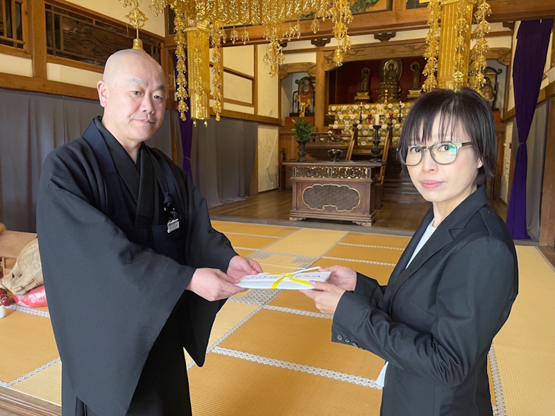 - 大本山總持寺祖院震災復興本部様へ支援金を納めさせていただきました